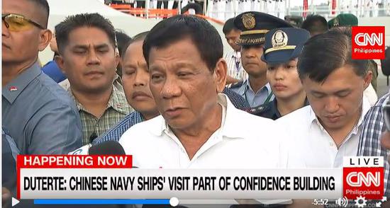 原标题:几年前完全不能想象,菲律宾总统会在中国军舰上说出这样的话