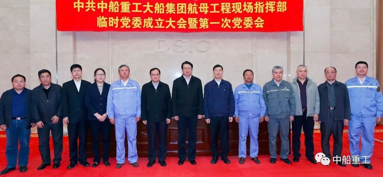 4月25日,航母工程现场指挥部临时党委成立大会暨第一次党委会在大船集团召开,航母工程总指挥、中船重工党组书记、董事长胡问鸣出席会议并作重要讲话,党组副书记、副总经理邵开文宣读中船重工党组关于成立航母工程现场指挥部临时党委的批复文件,党组成员、副总经理杨金成主持会议。