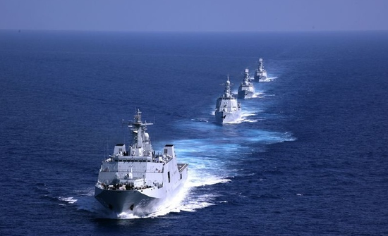 某次演练中,南海舰队的1艘071,1艘052C和2艘054A临时编队