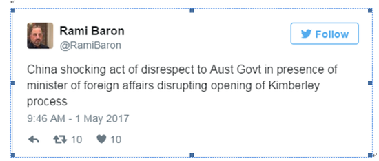 在澳大利亚外长出席金伯利进程会议的情况下,中国令人吃惊的举动是对澳大利亚政府的不尊重。