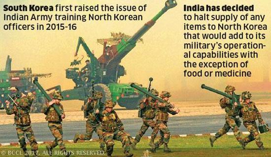 印度《经济时报》刊登的示意图称,韩国曾在2015年和2016年就印度培训朝鲜军官一事和印方交涉