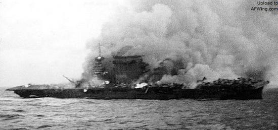 珊瑚海海战中列克星敦号被击中的瞬间