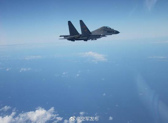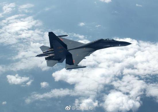 中国空军昨晚苏30MKK战斗机的照片,文字是“海空砺剑!!”,而在此之前有50多天没有更新内容,明显,发布的苏30MKK战斗机照片就是17日拦截美军军机的战斗机。