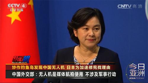 在19日外交部例行发布会上,有记者就此事提问,外交部发言人华春莹表示,“据了解,你提到的这个无人机是有关媒体进行航拍使用,不是个别外媒炒作的军事行动。但我想再次强调的是,钓鱼岛及其附属岛屿是中国固有领土。中国海警船编队在钓鱼岛海域进行正常的巡航执法及相关活动是中方固有权利。对于日方所谓交涉或抗议,我们当然不接受。”