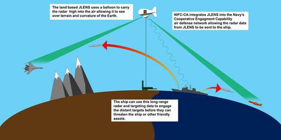 海军官员表示,该技术使舰载雷达与机载传感器平台相连接,以便侦察距离地平线以外的敌方反舰巡航导弹,如有需要,则会发射一枚SM-6导弹拦截和摧毁这一威胁。
