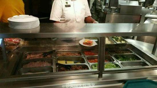来看看美军的食堂 ,美军这只世界上最强大的军队,军事后勤配备也是非常的完善,据说在海湾战争的时候,美军的伙食标准就是可以让前线的官兵吃上冰激凌。