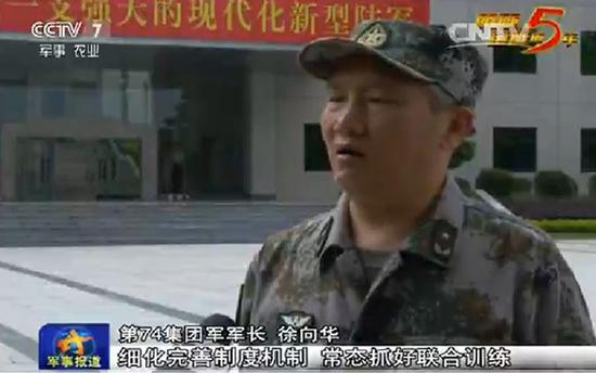 5月27日晚间央视军事农业频道播出的《军事报道》画面显示,此前担任原第65集团军参谋长的徐向华少将已升任新组建的第74集团军军长。