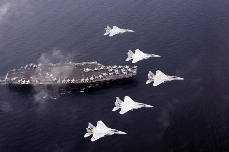 参与演习的美日联合舰队与日本的F-15战机 图片来源:日本防卫省