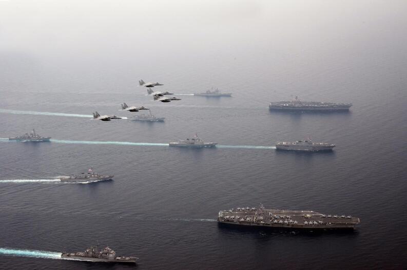 参与演习的美日联合舰队 图片来源:美国第7舰队