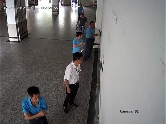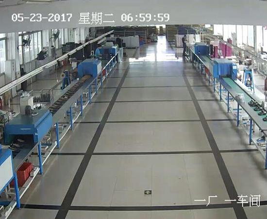 苏恒(黑色T恤带帽者)正在工厂生产车间内偷拍