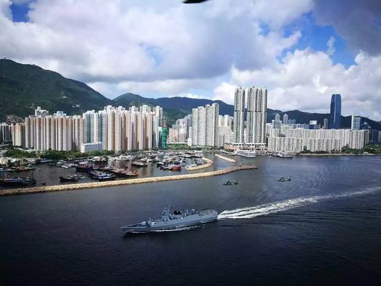 据介绍,这次海空联合巡逻行动,主要是对香港海空域的可疑目标进行监视、跟踪和查明,并及时处理突发情况。上午9时,驻军联合指挥所传来巡逻行动指令,惠州舰、钦州舰相继驶离驻香港部队昂船洲海军基地,编队穿越繁华的维多利亚港,向东博寮海峡开进。巡航过程中,导弹护卫舰组织了巡逻护航、跟踪监视等课题演练。