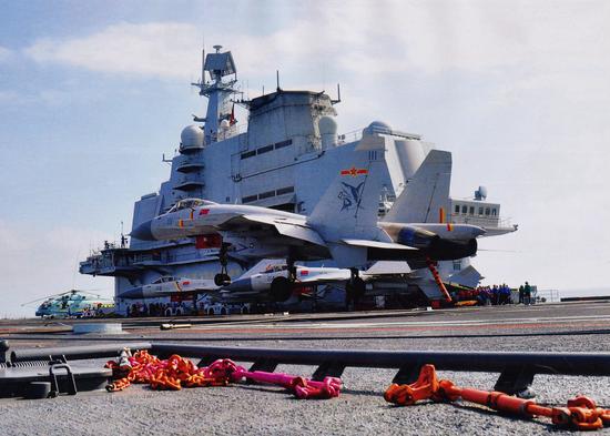 中国首艘航母辽宁舰近日再度成为网络热词,源于中国官方媒体的两篇报道。一篇是据中国军网英文版发布的最新图片显示,中国航母辽宁舰在海上使用歼-15战斗机进行飞行训练。文章内容归纳了辽宁舰从2012年9月25日入列以来直至2016年年底到2017年年初辽宁舰与数艘驱护舰组成编队首次走出第一岛链航行训练为止。不过,该文章并没透露辽宁舰目前正在做什么。
