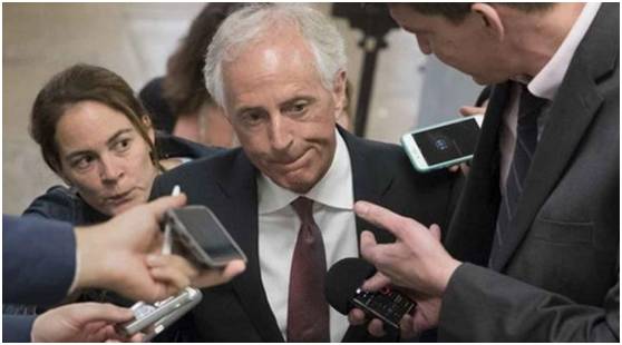 图为美国参议院外交关系委员会主席Bob Corker。他在看了特朗普的推特后,被惊得都不知道该说什么好了,而且一直在痛苦地摇头…