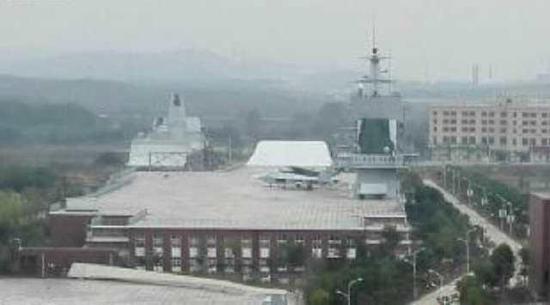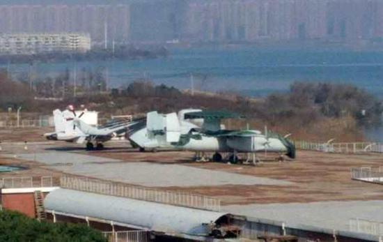 军事:疑似歼15和舰载预警机模型齐现武汉航母楼(图)