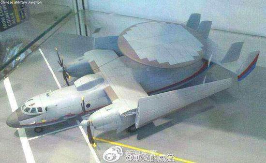 此次曝光的航母楼照片上的舰载预警机模型相较之前曝光的已经在试飞状态的国产舰载预警机在外形上并无太大出入,基本可以确定这就是中国首款舰载预警机的模型。从外形上看中国首款舰载预警机和美国海军服役的E2预警机在外形上十分相似,但可能会比美国的大,因为这两款预警机都是在现有运输机的平台基础上加以改进,而中国舰载预警机的平台基础要稍大一些。这样的方式可以给舰载机上的设备提供足够的空间,也可以加装更大的雷达,对于提高性能来说是非常有效的。