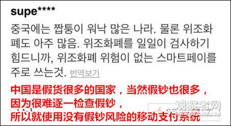 军事:韩节目称中国移动支付发达 韩网民称假钞太多才用的(2)
