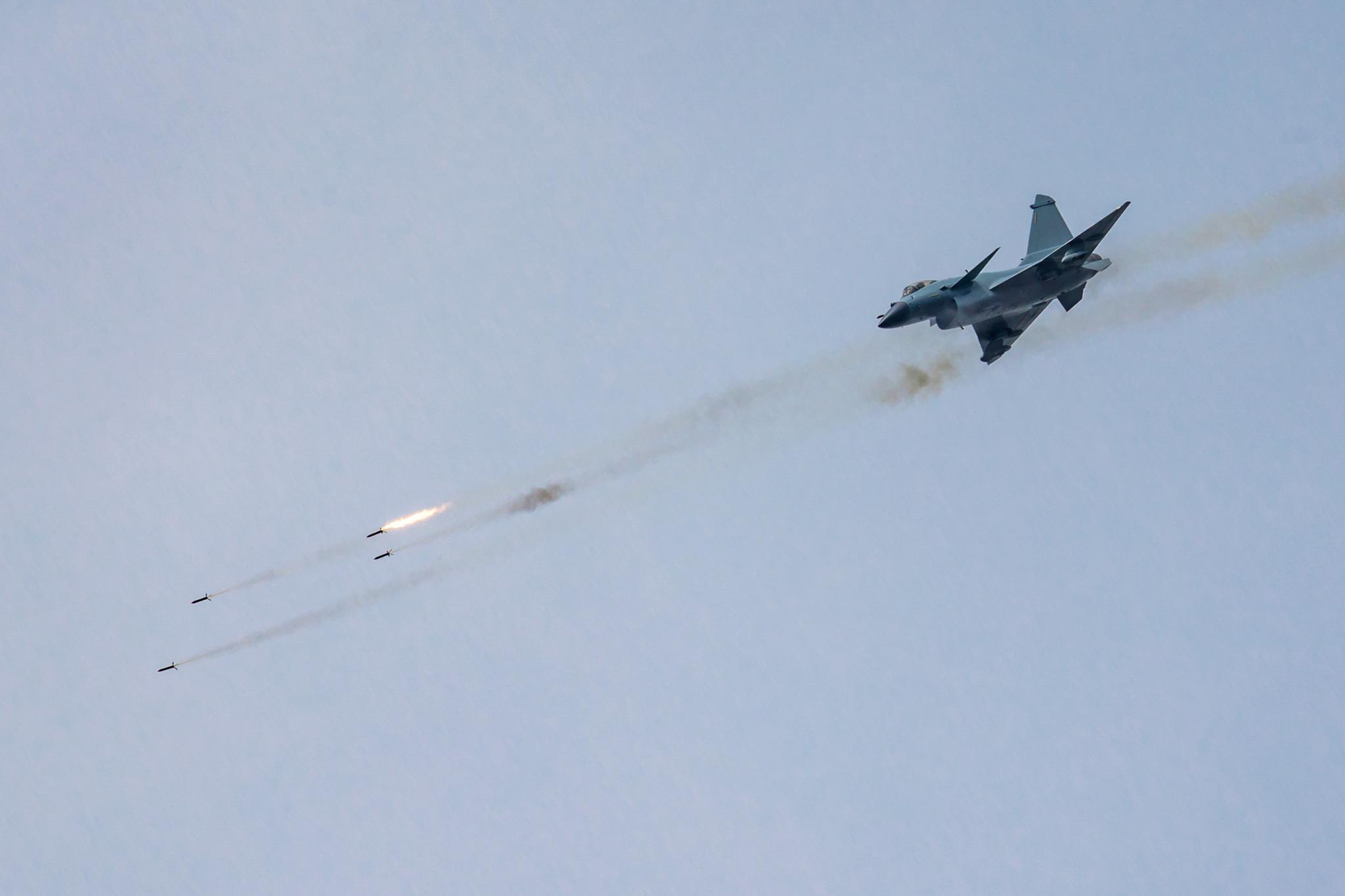 军事:我军歼10B备战航空飞镖大赛 进行火箭弹对地攻击(图)(4)