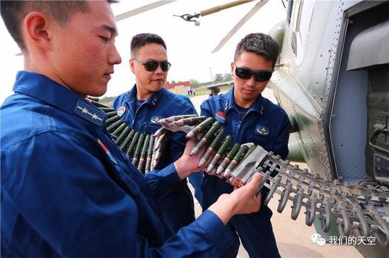 飞行员赛二伟:“对地攻击主要使用的是火箭弹和航炮,对地面半径15米圈内的目标按时间节点进行精准打击。航炮和航箭都是非制导武器,我们飞行员操纵直升机攻击地面,难度比用手枪在运动中打靶还要大。