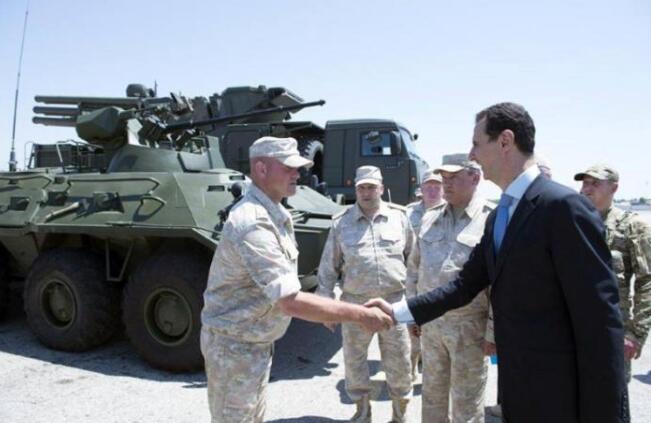 据叙利亚国家电视台报道,俄军总参谋长瓦列里·格拉西莫夫将军陪同巴沙尔参观了俄军基地。