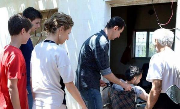 阿萨德携全家慰问在战斗中受伤的叙军士兵家庭