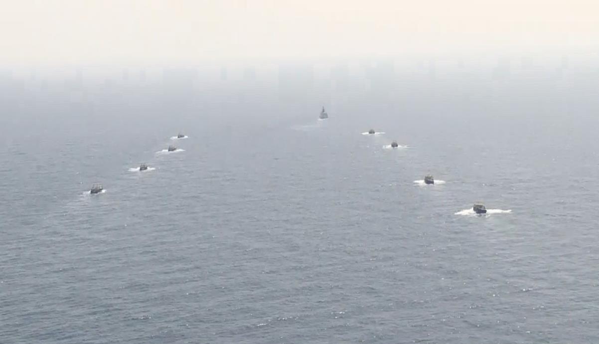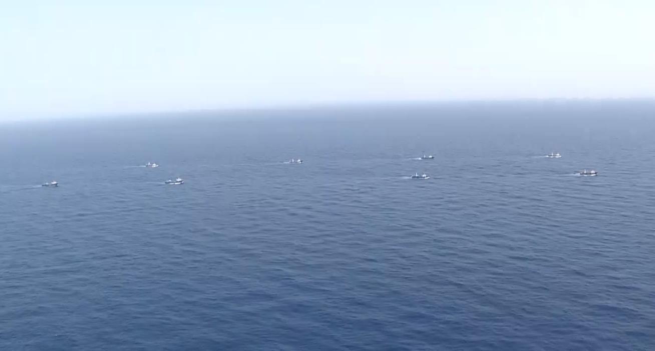 当地时间6月25日,中国海军第26批护航编队扬州舰成功完成第1050批船舶护航任务,顺利将来自广西的“日昇611”号等8条远洋捕捞渔船护送到安全海域。