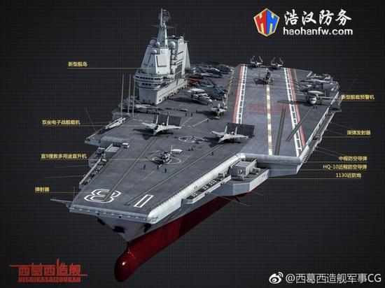 2、全电航母:纵观国际上军船发展趋势,电力推进因具有噪音低,能效高,结构灵活等诸多优势,被视为下一代军用舰艇的标杆;而对标即将入役的美国福特级航母,我们可以发现下一代航母将具有最明显特征就是使用了电磁弹射和电涡流阻拦索技术,因此,003行航母将毫不犹豫的采用包括核电综合推进、电磁弹射及电涡流助降系统的蓝星最强航空母舰。