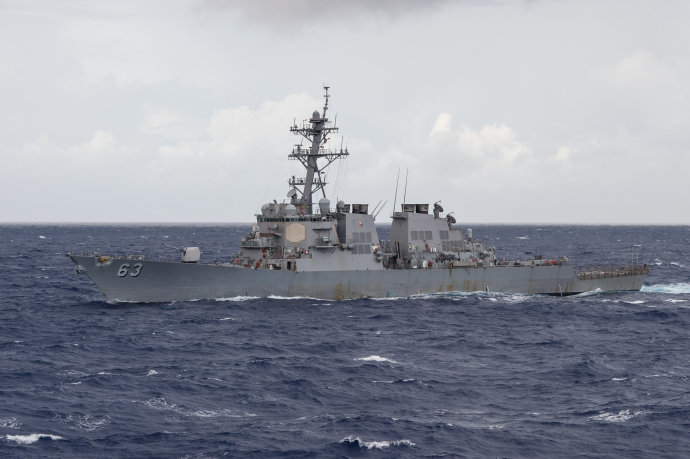 例如2016年10月,美军“迪凯特”号驱逐舰在西沙实施“航行自由”时,中国驱逐舰广州舰和护卫舰洛阳舰对美舰进行识别查证,并予以警告驱离。2016年5月,解放军更是出动两架战斗机、一架警戒机赶赴相关海域,并由驱逐舰广州舰、护卫舰绵阳舰和临汾舰对驶入永暑礁12海里范围的美国驱逐舰“劳伦斯”号进行识别查证和警告驱离。2015年10月,美军“拉森”号驱逐舰在进行类似行动时则被我驱逐舰兰州舰和护卫舰台州舰驱离。