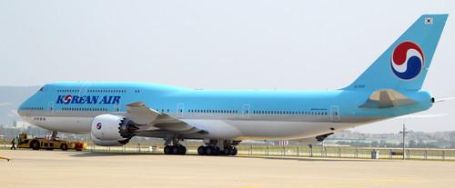 资料图片:韩国大韩航空有限公司的一架波音747-8客机。新华社记者 姚琪琳 摄