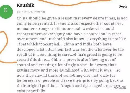 7、在印度新闻媒体下,也可以看见中国的文字评论哦!有理智分析爱好和平的,也有一些人用汉字在挑拨离间的。