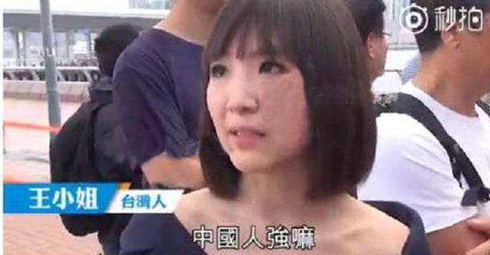 参观现场,除了大批当地民众外,有媒体捕捉到一位亮丽身影,一位台湾正妹专程到香港参观“辽宁号”。她表示,这次机会难得,也对船舰上所有军事设施和科技有兴趣,面对媒体采访时,她脱口而出“中国人强嘛!”