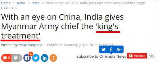 军事:印媒称印度用国王待遇招待缅甸总司令 向中国发信号