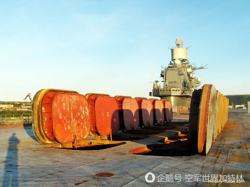 这张照片,展示了库兹涅佐夫号航母的P700导弹发射器打开盖子的情况。可以看到P700发射器非常的巨大,这是因为P700反舰导弹本身就非常巨大。但是中国在改装辽宁号航空母舰时,这一巨大结构造成了不小的麻烦。