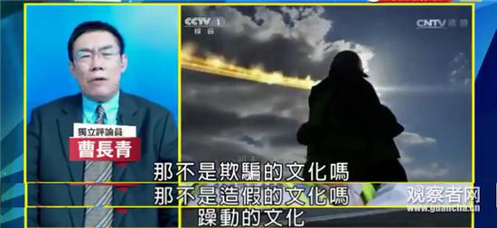 他连用了三个反问句:大陆能有什么文化啊?那不是欺骗的文化吗?那不是造假的文化吗?那是躁动的文化!