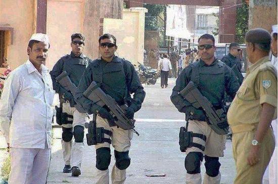 另外就是印度警察部队的装备也很差,二战的恩菲尔德步枪,还有伊莎波尔7.62mm半自动步枪,INSAS“英萨斯”5.56毫米突击步枪都有。