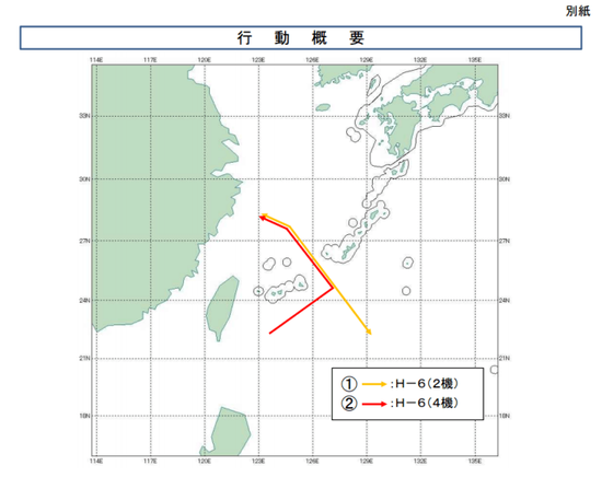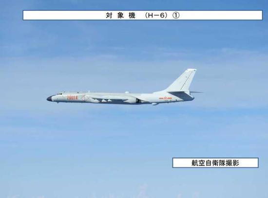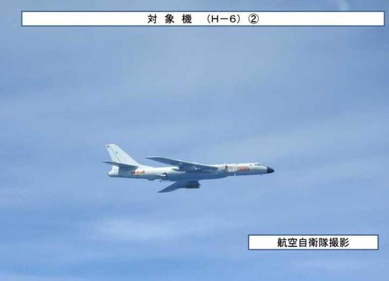 日本防卫省统合幕僚监部提供的资料显示,六架中国空军“轰-6”轰炸机分成两批次,一组为两架,一组为四架。统合幕僚监部官网还公布了日战机近距离拍摄到的中国轰炸机照片。