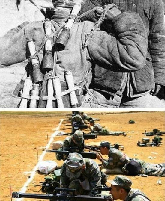 当年,中国士兵对付敌人的坦克碉堡只能背起手榴弹用血肉之躯开路;现在,中国士兵使用手中的榴弹发射器可轻易在阵地前划出一道火海。