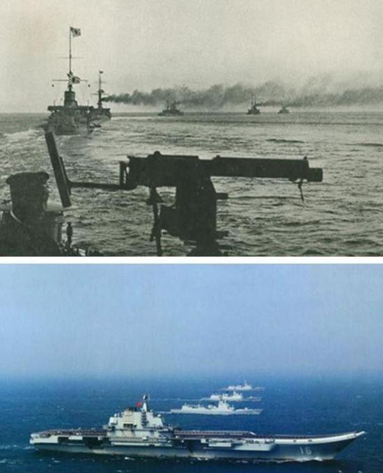 一百年前,外国的舰队可以在中国的海洋肆意航行;一百年后,中国的航母编队在世界大洋上展示中国的海军力量。