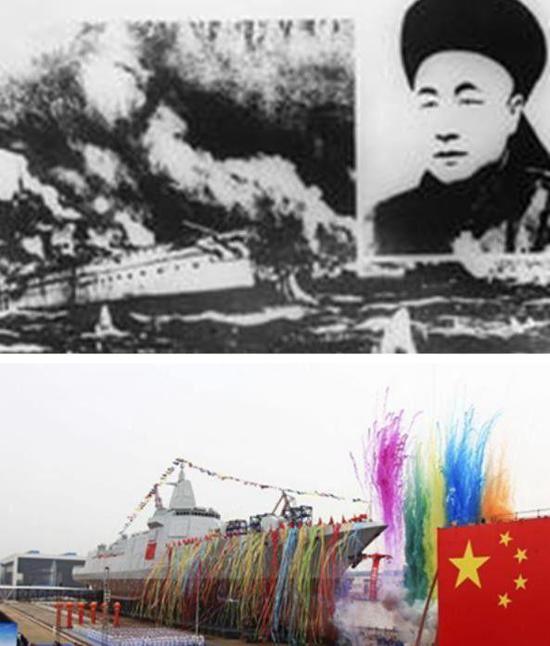 一百年前的海战中,中国海军在落后的条件下被逼得只能悲壮地去撞击敌舰;一百年后,中国人自行研制的万吨神盾级驱逐舰下水,数百海里外可歼敌于无形。