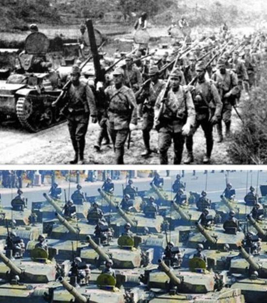 当年,火力孱弱的中国士兵都奈何不了敌人几吨重的小坦克;今天,中国用铺天盖地的主战坦克告诉对面什么叫碾压。