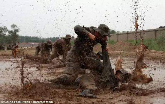 英国《每日邮报》曾刊出一系列中国武警在泥水中翻滚训练的照片,称“与英国警察训练大不相同”。
