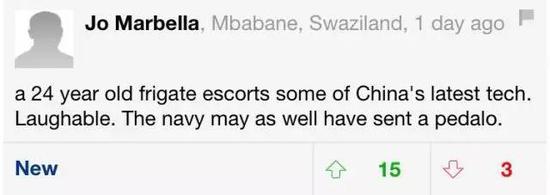 ▲一位24岁高龄的护卫舰护送着中国的最新装备,太好笑了。海军最好再增派一只脚踏船。