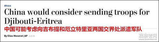观察者网报道,外交部网站消息,7月21日,中国驻非盟使团团长旷伟霖大使接受路透社、美联社、西班牙通讯社等国际媒体记者联合采访,重点就中非关系、中非盟合作、中国经济形势等问题吹风。当天,美联社援引旷伟霖的话报道称,中国正在考虑向吉布提和厄立特里亚两国有争议边界处派遣军队。