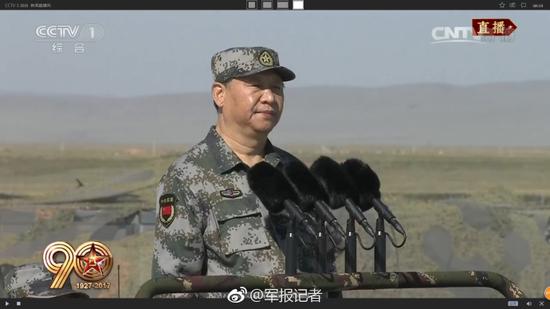 习近平登上野战检阅车。阅兵总指挥、中部战区司令员韩卫国上将报告受阅部队准备完毕,习近平下达检阅开始的命令。