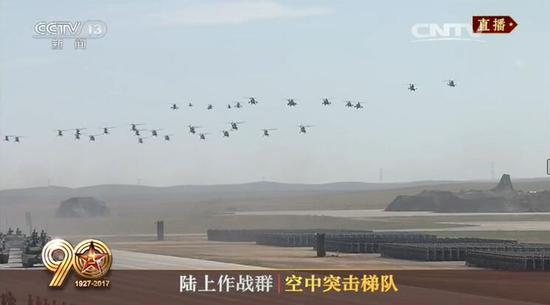 军事:八一阅兵17架直升机组成八一标识 24架排90字样亮相