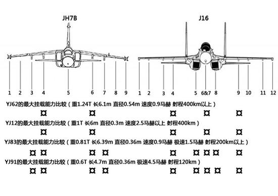 歼轰-7B和歼-16的挂载方案