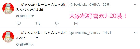 不过在这场中印巴三国网民上演的大戏中,有一群人始终淡定旁观,陷入自己粉红色的小世界中,他们叫做——“J-20脑残粉”。海外君随意给大家感受一下,“哇!J-20超酷的!”,还有日本妹子也追捧,“大家都好喜欢J-20哦!”