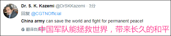 还有一位“巴铁”称赞中国军队,“中国军队能拯救世界,带来长久的和平”。