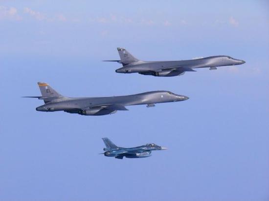 报道称,当天上午,两架B-1B轰炸机从关岛安德森空军基地起飞,飞抵韩国京畿道乌山空军基地上空,后从西海(即黄海——本网注)德积岛方向飞离半岛。