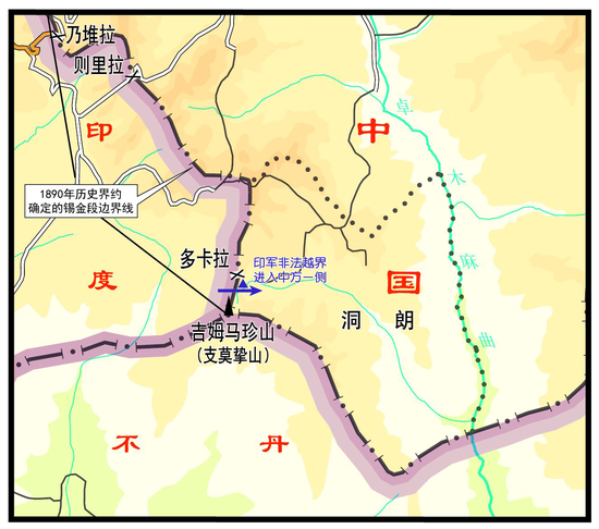 文件透露,长期以来,印军在多卡拉山口及其附近地区的边界线印度一侧修建了道路等大量基础设施,甚至在边界线上修建碉堡等军事设施。与此相反,中国在该段边界线中国一侧只进行了少量的基础设施建设。近年来,印度边防部队还阻挠中国边防部队沿着边界线正常巡逻执勤,并企图越界修建军事设施,中国边防部队对此多次提出抗议并依法拆除印军越界设施。实际上,正是印度企图不断改变中印边界锡金段现状,对中国构成严重的安全威胁。