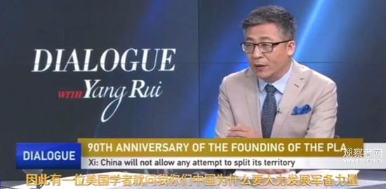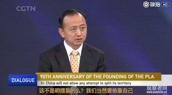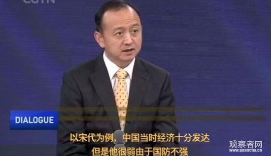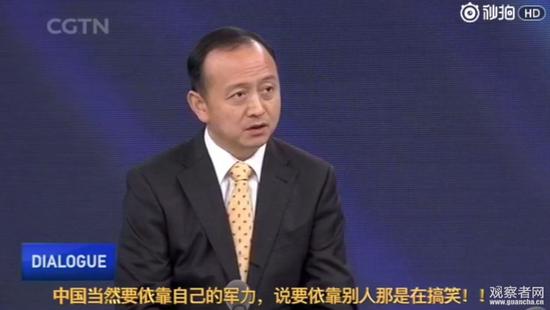 节目中,中国国防大学防务学院院长朱成虎少将以鸦片战争为例指出,为了我国的国土安全,我们当然要建设一支强大的现代化军队。